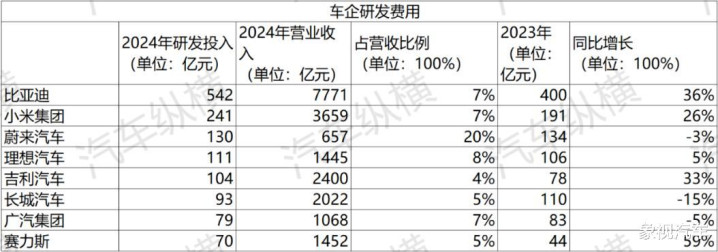 单就研发投入而言,蔚来仅次于542亿元的比亚迪和241亿元的小米,在车企中高居第三名。其20%的研发营收比,更是遥遥领先。